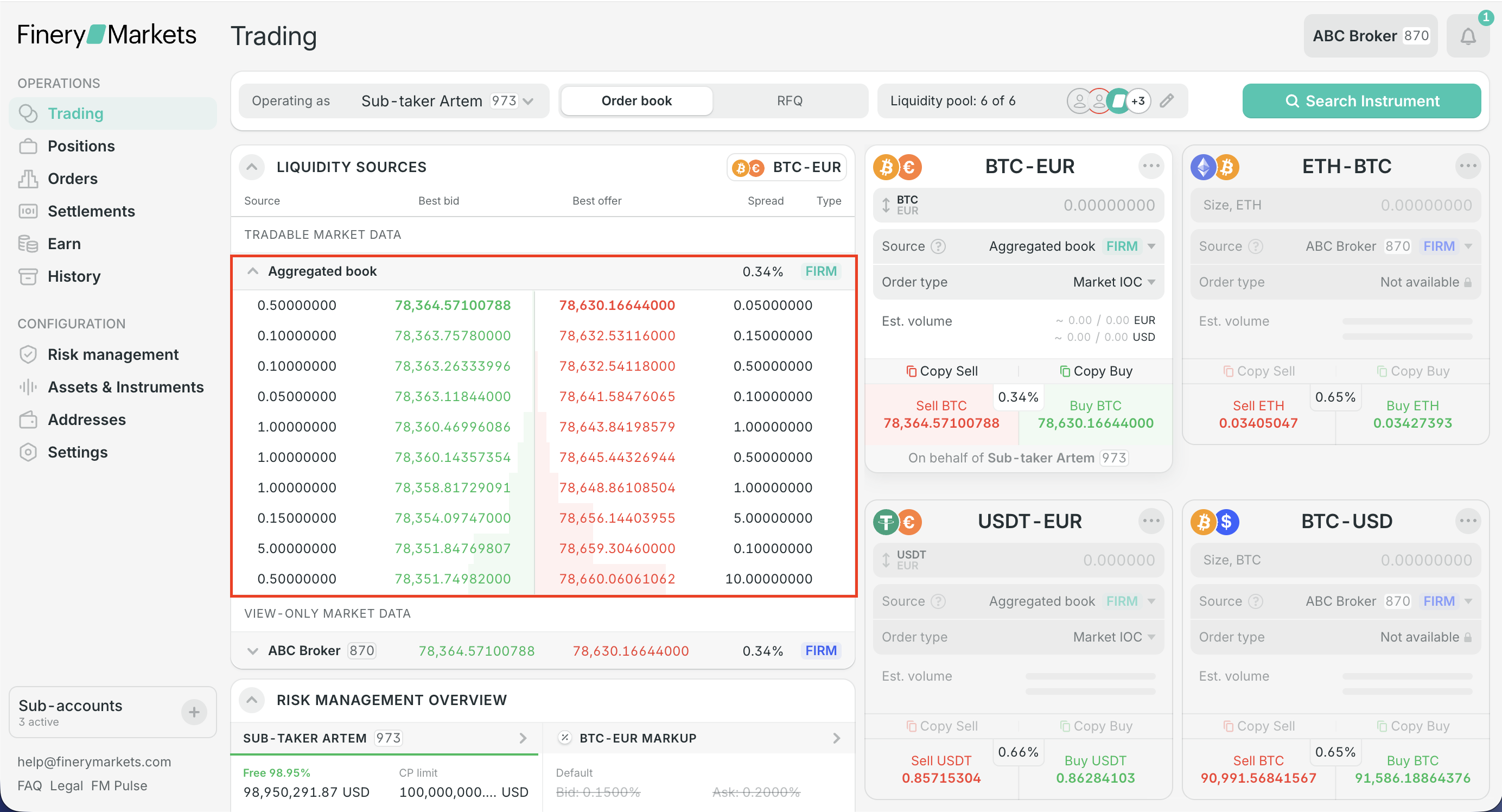 If you are trading with more than 1 liquidity provider (LP), their orders will be aggregated in 1 order book. The system will show the orders filtered by price and time priority.